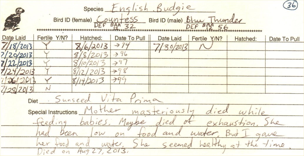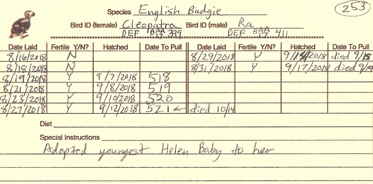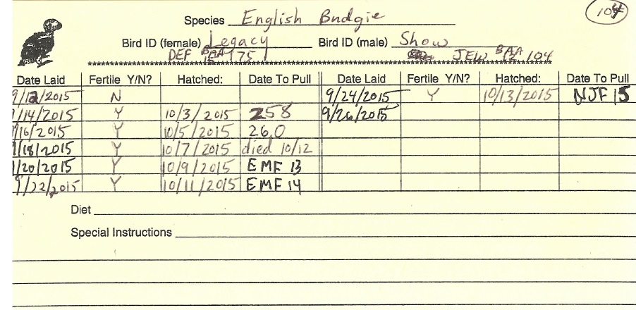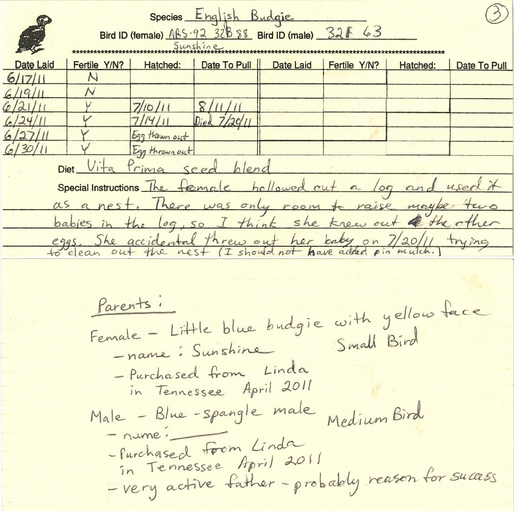 Hatch Record: Breeding Records (see Key): 1. 7E-0H-0L (8/8/2011) |