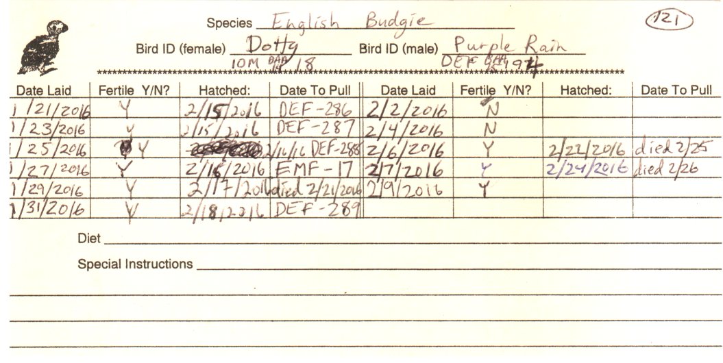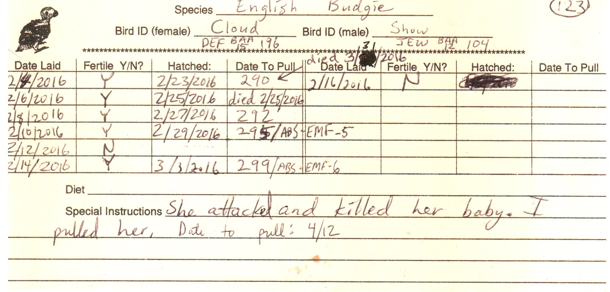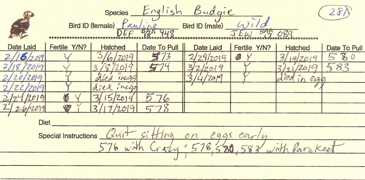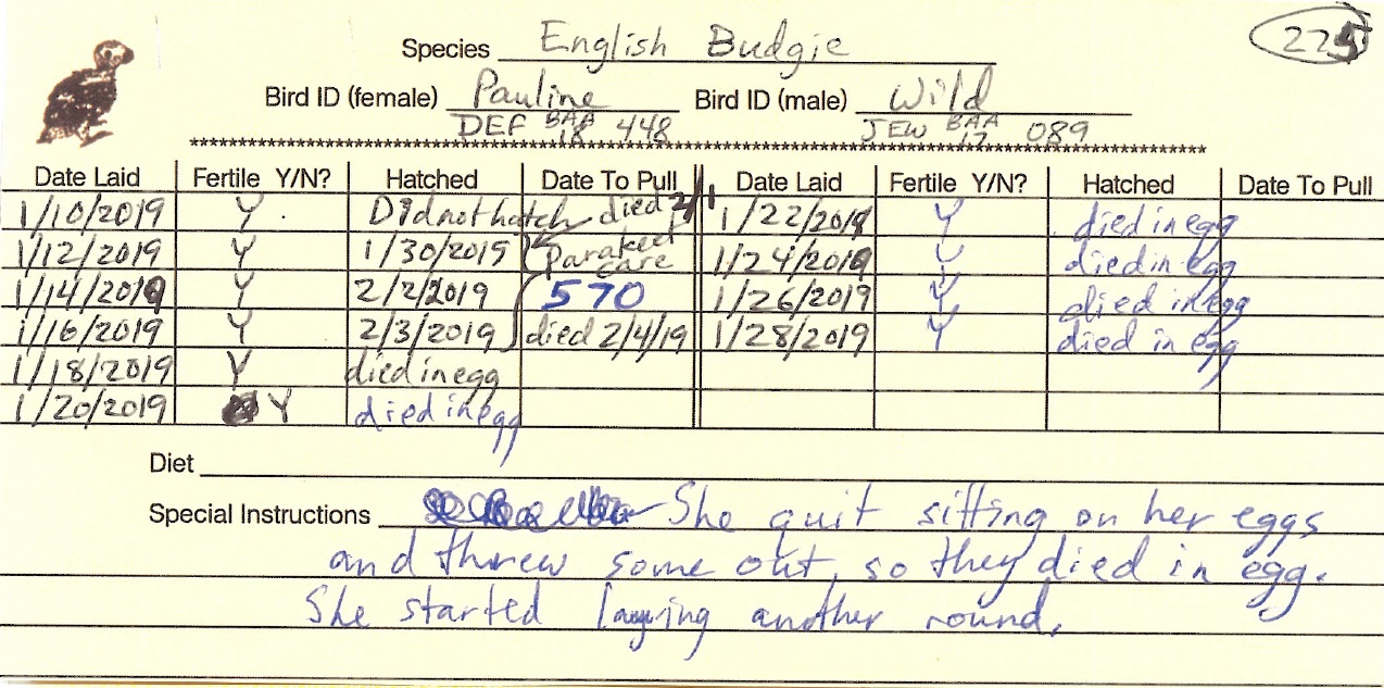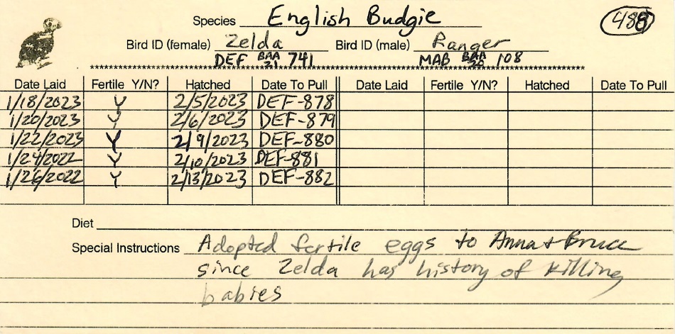 Hatch Record: Breeding Records (see Key): 1. 5E-1H-1L (4/3/2022) |