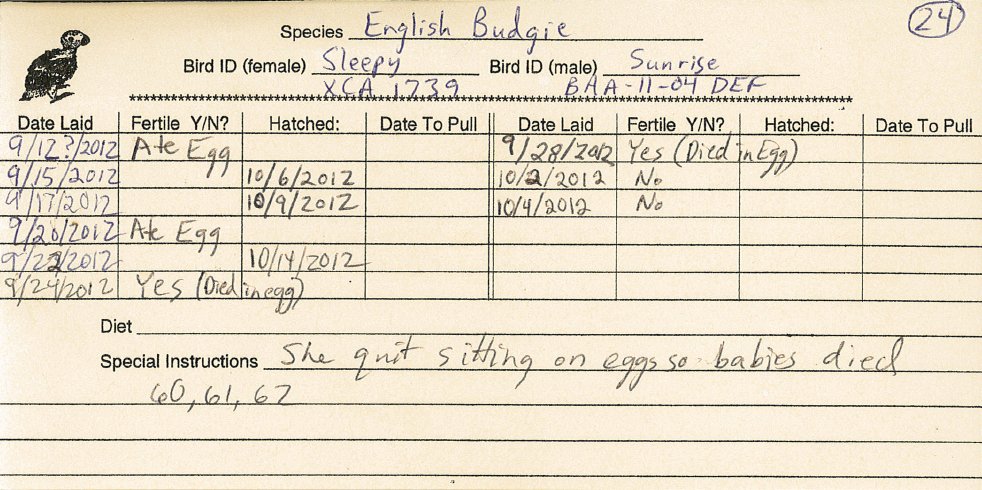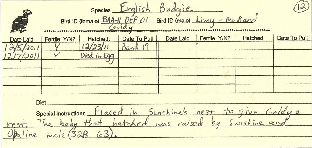 None Breeding Records (see Key): 1. 6E-6H-6L (12/04/2012) |